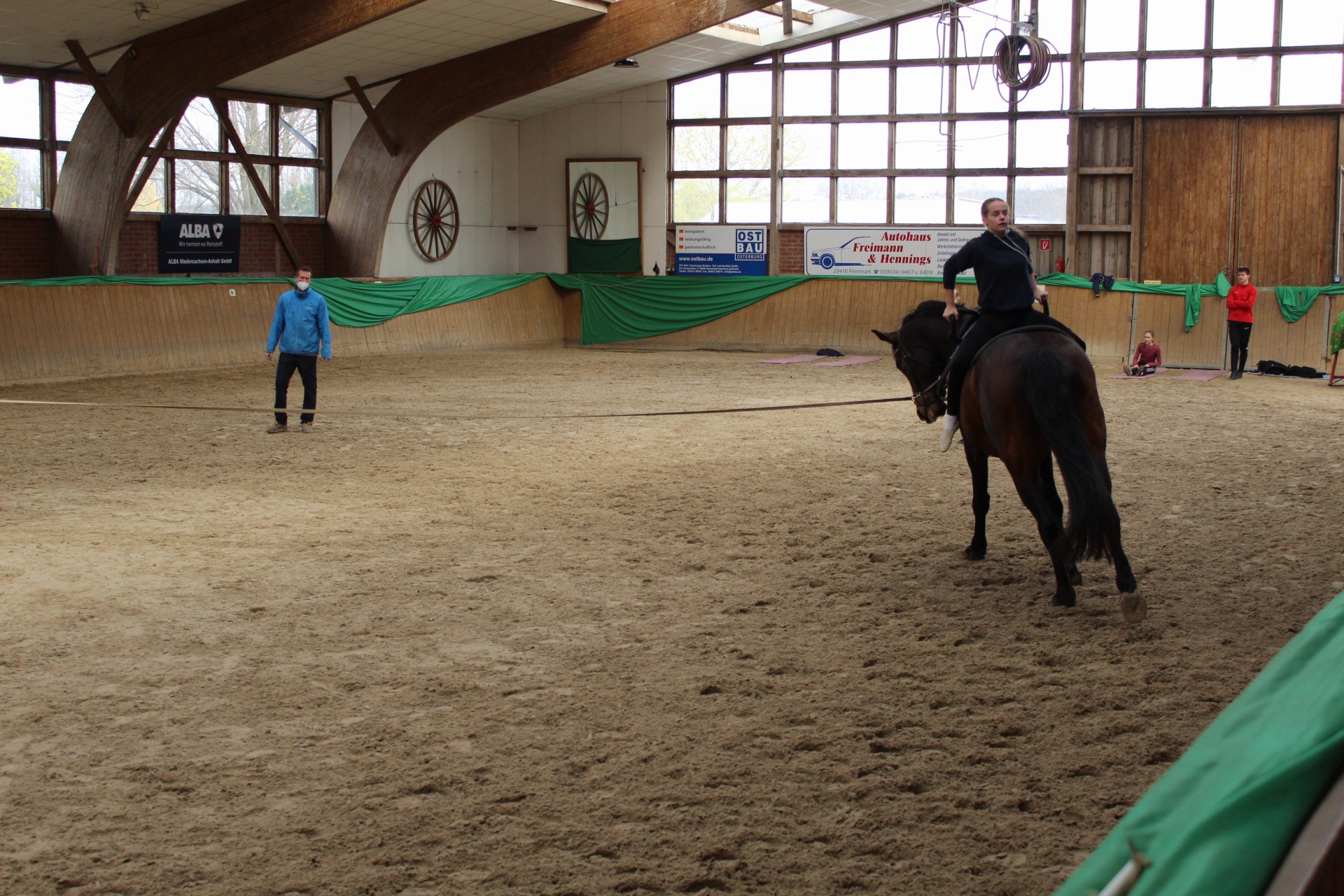 Longierunterricht und Korrektur der Pferde an der Longe, in dieser Einheit standen Pferd und